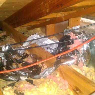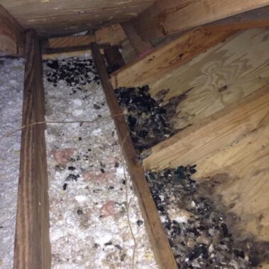 A major cause of home and attic damage, raccoons in Mobile County are always on the lookout for a great place to live and your attic is just right. Attics provide a dry, warm, safe shelter for them to raise their young. They enter your home by prying open areas in soffits and vents and, once inside, the damage begins. Destruction of duct work, insulation, wiring, and wood often takes place, as well as damage to personal belongings stored in the attic. Your attic has also become an indoor toilet for your new tenants who leave behind urine and droppings. Parasites such as fleas can also be a problem long after the family has been removed.